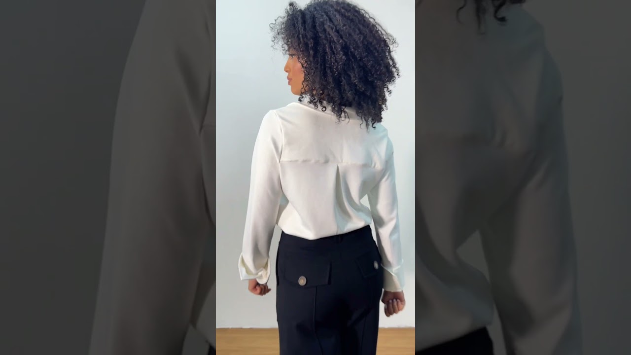 A Camisa Vera é a tradução perfeita da elegância minimalista com toque de modernidade. Confeccionada em malha levemente encorpada, proporciona caimento impecável, estrutura suave e conforto para o uso diário, sem abrir mão da sofisticação. O modelo apresenta gola de camisa clássica, que confere um ar refinado e versátil, facilmente adaptável a diferentes ocasiões. Seu decote em “V” valoriza a silhueta feminina de forma delicada, equilibrando formalidade e feminilidade. Na parte frontal, conta com dois bolsos chapados funcionais, que acrescentam estilo e personalidade ao design. As mangas longas, com punhos levemente estruturados e aberturas laterais, garantem conforto e liberdade de movimento, além de possibilitar diferentes formas de estilo, podendo ser usadas soltas ou dobradas para um visual mais despojado. O comprimento da peça é clássico, terminando na altura do quadril, perfeito para usar solta ou por dentro da calça ou saia, possui uma pequena fenda lateral para dar mais conforto e mobilidade, evitando que o tecido repuxe ao sentar ou se movimentar, além de acrescentar um detalhe estético que deixa o caimento mais leve e moderno. Na parte de trás, a pala com prega central traz maior mobilidade e caimento elegante, além de reforçar o acabamento sofisticado da camisa. A malha levemente encorpada garante que a peça mantenha sua forma e não marque o corpo, sendo uma opção prática e chic para diversas situações. A Camisa Vera é extremamente versátil: pode compor produções de trabalho combinada com calças de alfaiataria, ou looks casuais elegantes quando usada com jeans, saias ou bermudas. Uma peça atemporal, que une funcionalidade, conforto e estilo em uma única proposta.
